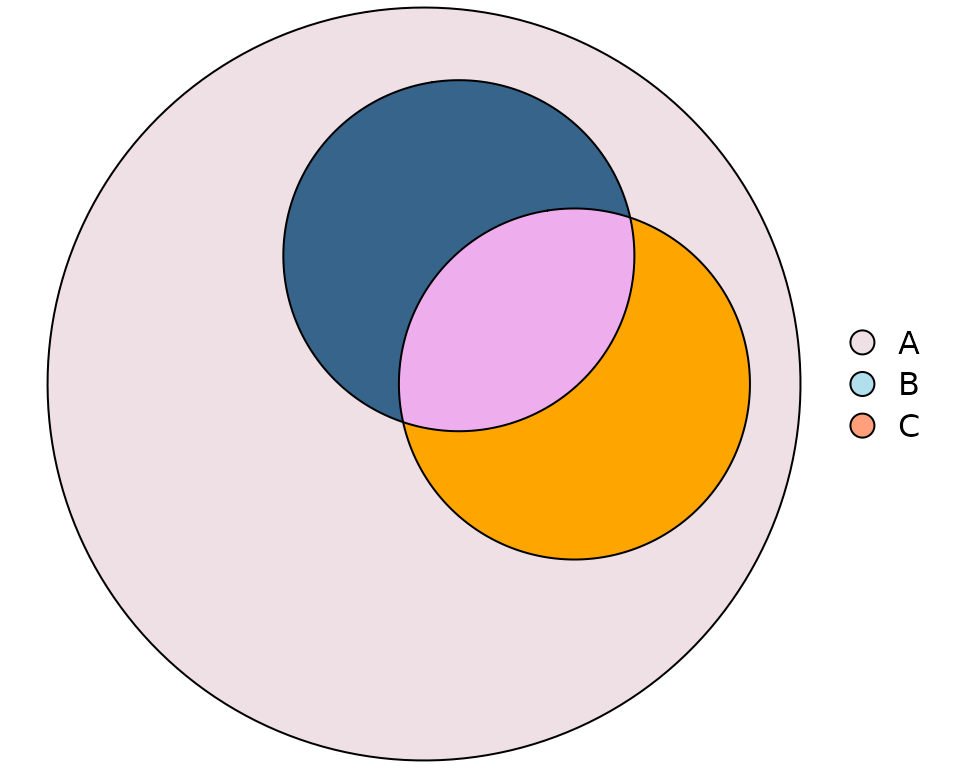 c("A" = 7, B = 6, C = 0, "A&B" = 0, "A&C" = 1, "B&C" = 1, "A&B&C" = 2),